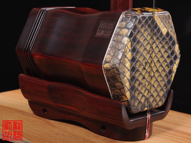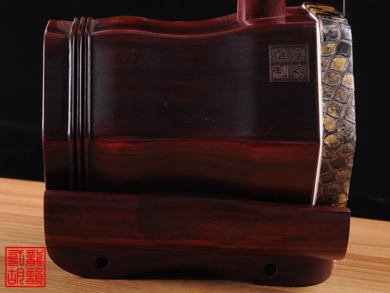 产品介绍 本款二胡选用上等紫檀木料、上等蟒皮佐以精良制作工艺