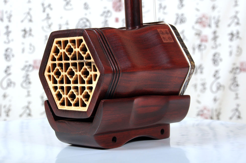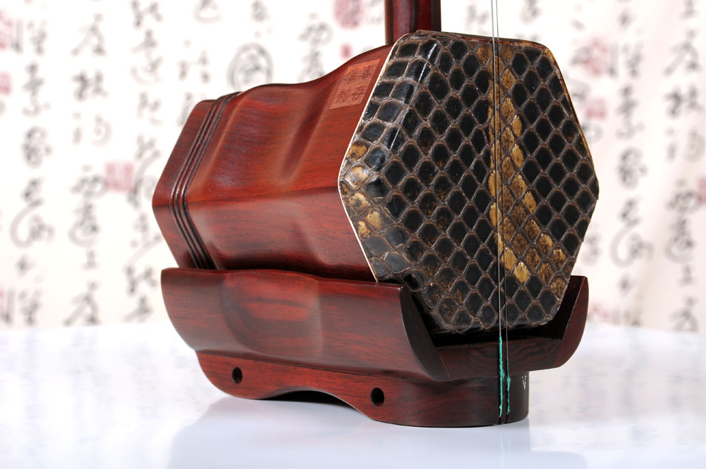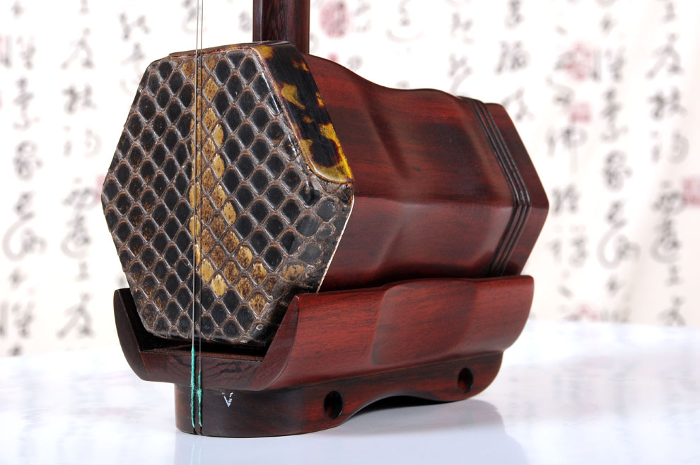 产品介绍 本款二胡选用上等紫檀木料、上等蟒皮佐以精良制作工艺