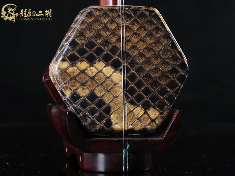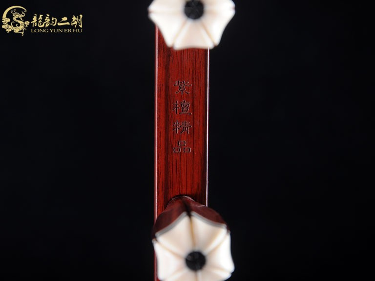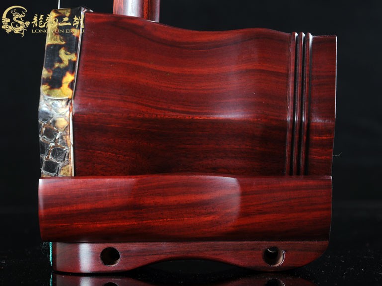 产品介绍 龙韵藏品级紫檀二胡选用上等紫檀木料、野生金花蟒皮佐以独家工艺精心制作而成。