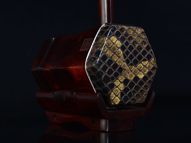 产品介绍 本款二胡选用上等紫檀木料、上等蟒皮佐以精良制作工艺