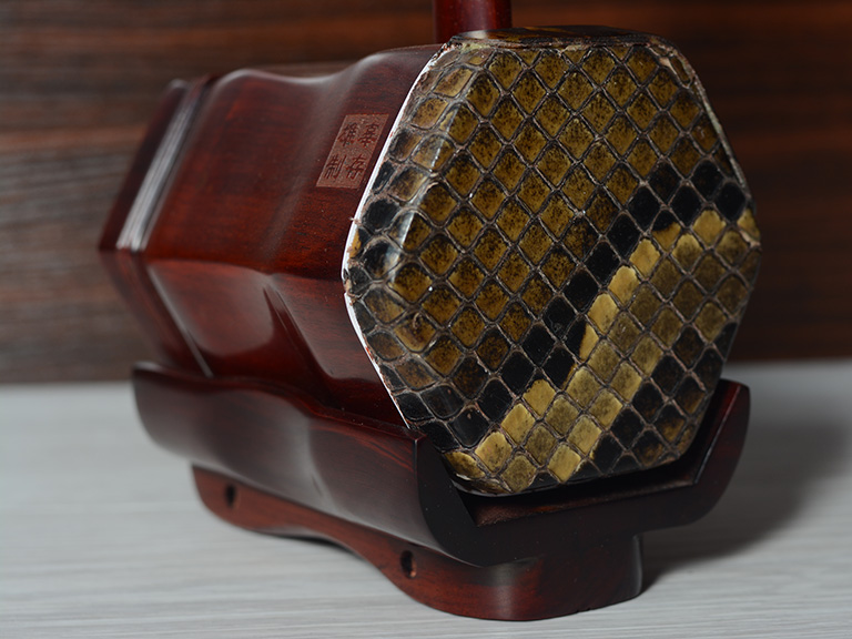 产品介绍 本款二胡选用上等紫檀木料、上等蟒皮佐以精良制作工艺