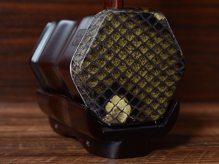 产品介绍 龙韵藏品老红木二胡选用上等老红木、野生金花蟒皮佐以独家工艺精心制作而成。