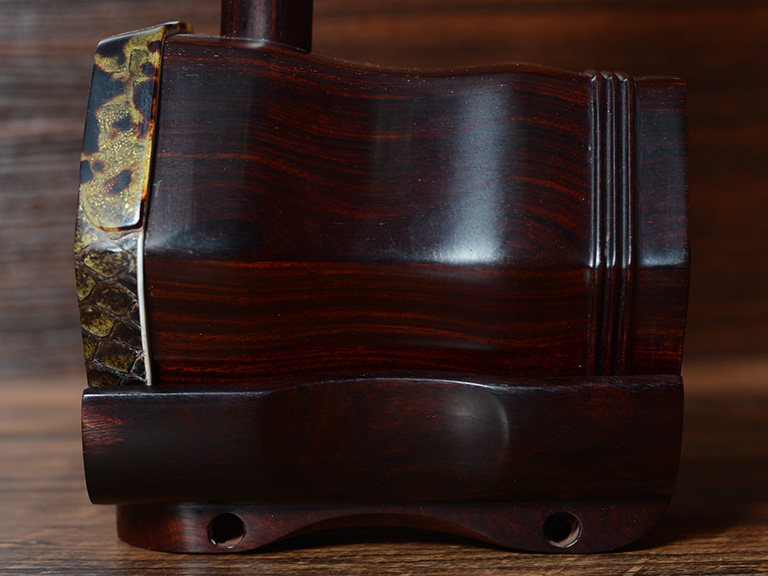 而且选用的是蟒皮中上好部位。如此考究的选材再加上上乘制作工艺,从而使整琴造型