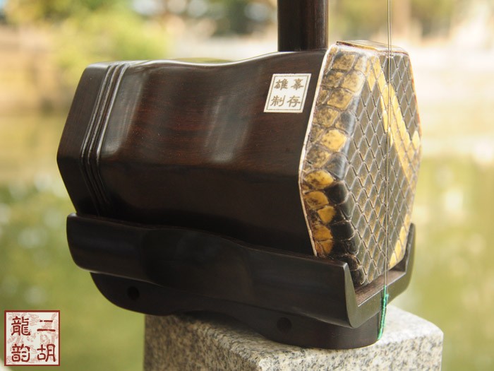 产品介绍 龙韵藏品老红木二胡选用上等老红木、野生金花蟒皮佐以独家工艺精心制作而成。