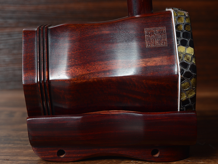 产品介绍 本款二胡选用上等紫檀木料、上等蟒皮佐以精良制作工艺
