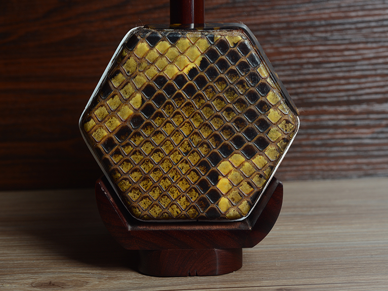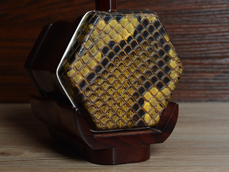 产品介绍 本款二胡选用上等紫檀木料、上等蟒皮佐以精良制作工艺